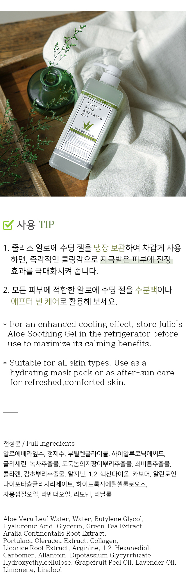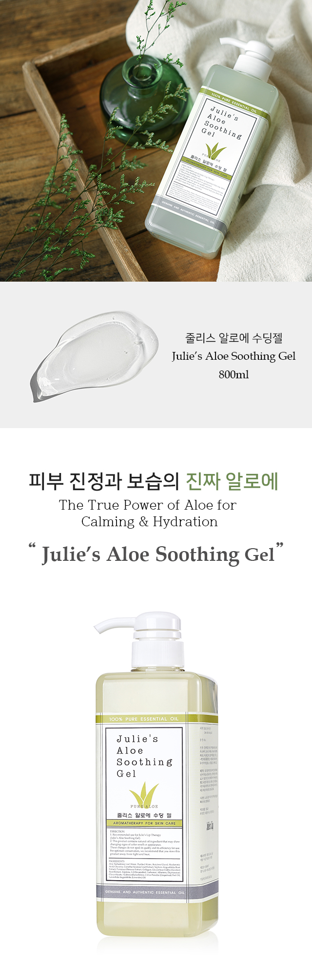 줄리스 알로에 수딩 젤 Julie’s Aloe Soothing Gel : 800ml