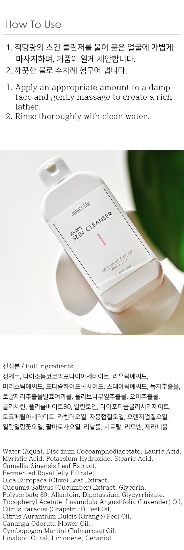 줄리스 스킨 클린저 200 Julie’s Skin Cleanser : 200ml
