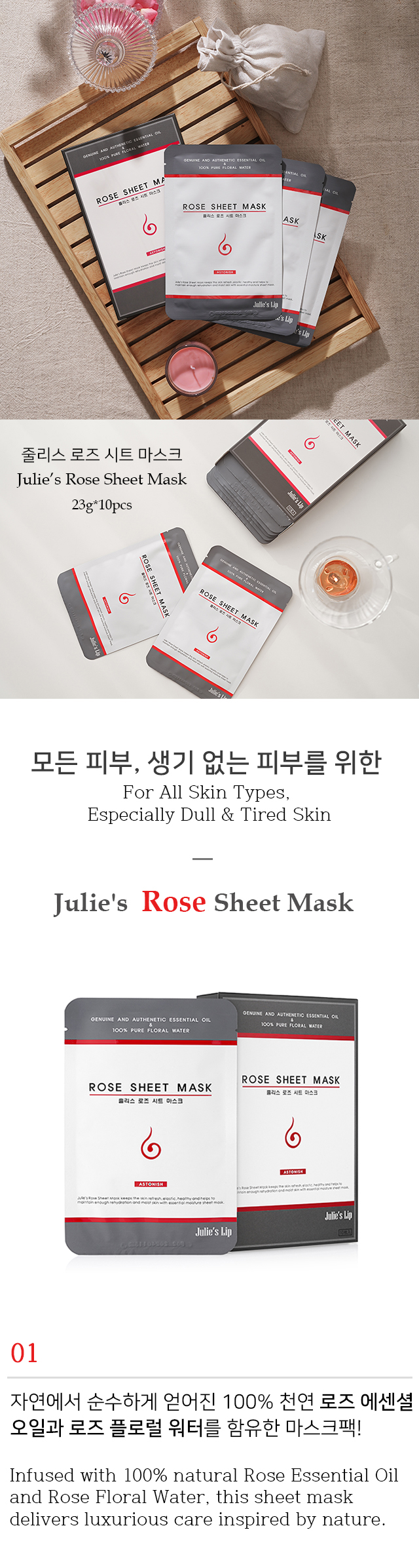 줄리스 로즈 시트 마스크 Julie’s Rose Sheet Mask 10매