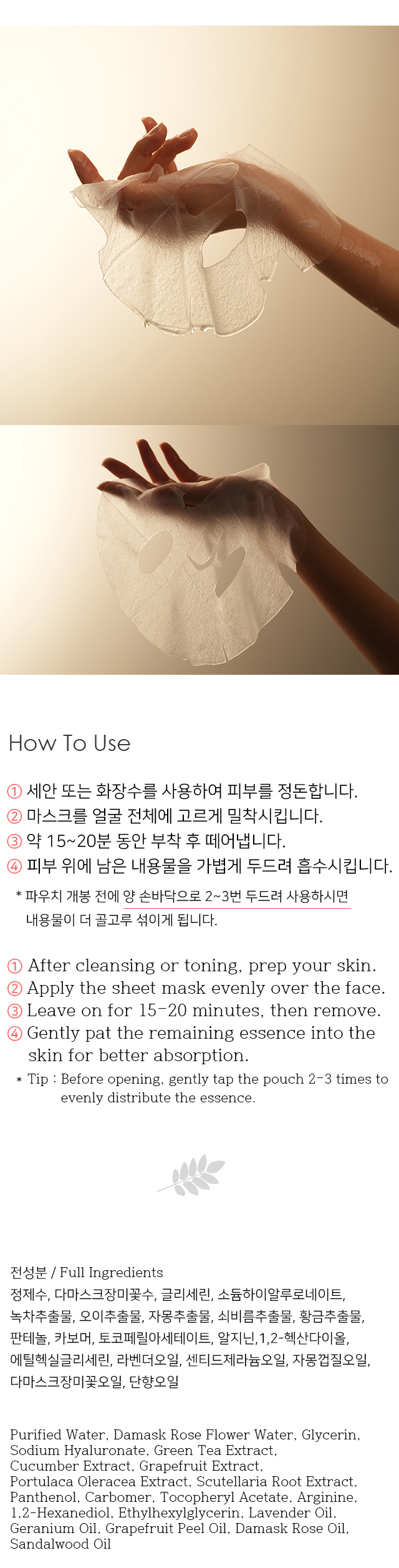 로즈 오일이 함유된 천연 시트 마스크 (모든 피부, 생기없는 피부용)