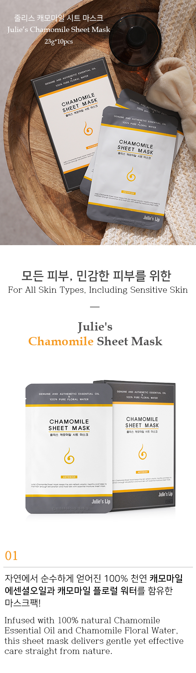 줄리스 캐모마일 시트 마스크 Julie’s Chamomile Sheet Mask 10매